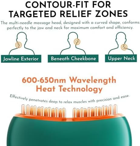 - Contour-Fit for Targeted Relief with Heat Technology: Designed to adapt to the natural shape of your jaw and neck, our massager multi-point massage head focuses key areas of tension, helping to alleviate facial discomfort, jaw clenching, and headaches and deliver targeted and soothing comfort. The heat technology provides soothing warmth to enhance blood circulation, relax muscles, and alleviate discomfort.